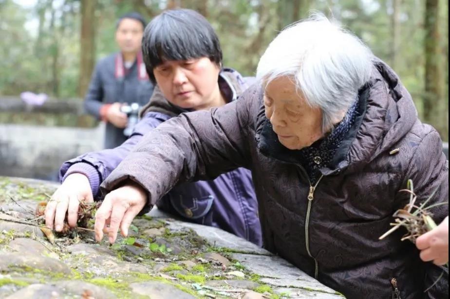 在江西蓮花縣玉壺山,龔全珍老人為甘祖昌將軍掃墓。