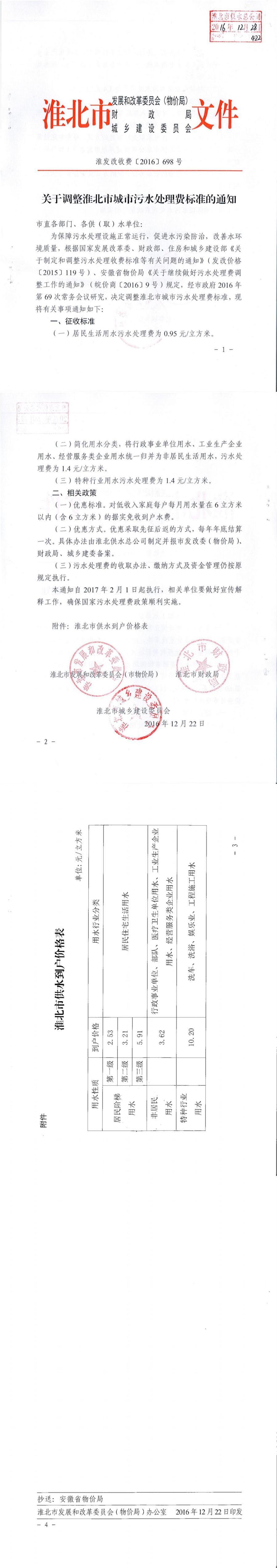 關于調整淮北市城市污水處理費標準的通知 淮發改收費【2016】698號