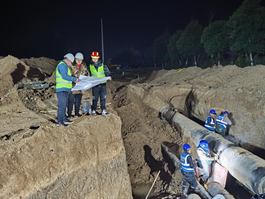 因施工影響導(dǎo)致管網(wǎng)沿線區(qū)域短暫停水,市水務(wù)集團(tuán)前期通過媒體、網(wǎng)站、微博等平臺(tái)進(jìn)行宣傳告知。企業(yè)用戶逐一上門進(jìn)行通知,優(yōu)化施工方案,施工物資提前調(diào)配,錯(cuò)峰施工,把因停水給企業(yè)生產(chǎn)和居民用水帶來的影響降至最小。為保證管網(wǎng)遷改的順利進(jìn)行,水務(wù)集團(tuán)供水公司組建專業(yè)力量針對(duì)每個(gè)遷改點(diǎn)制訂了詳細(xì)的工作預(yù)案、專項(xiàng)施工方案和應(yīng)急預(yù)案,明確涉及遷改的相關(guān)工作要求,提升工作效率,確保工程質(zhì)量和施工安全。公司管網(wǎng)管理部多次確認(rèn)管線位置走向并開展技術(shù)交底。對(duì)于預(yù)埋管道交叉的部分采用人工探挖,對(duì)開挖到的第三方管線采取有效的保護(hù)措施,待管線探明后采用機(jī)械開挖,確保施工現(xiàn)場(chǎng)安全有序。施工中,加強(qiáng)與業(yè)主和監(jiān)理就突發(fā)狀況的溝通和協(xié)調(diào),加強(qiáng)施工現(xiàn)場(chǎng)工程質(zhì)量和安全監(jiān)督,完善過程資料,優(yōu)化細(xì)化遷改工序。做好停水計(jì)劃,將停水時(shí)間縮減到最短,停水范圍優(yōu)化到最小。項(xiàng)目遷改DN800管道口徑,總長(zhǎng)度110米。公司投入3施工隊(duì),40余人,采用分段式施工,其中白天進(jìn)行開挖、鋪設(shè)、遷移等工序。為了把因停水給居民帶來的影響降至最小,管網(wǎng)碰頭、合攏等采取夜間停水施工。供水管網(wǎng)的讓道不僅保障了淮宿蚌城際鐵路(淮北段)建設(shè)的順利推進(jìn),而且改遷后的供水管線質(zhì)量、沿線水質(zhì)、水壓安全穩(wěn)定。