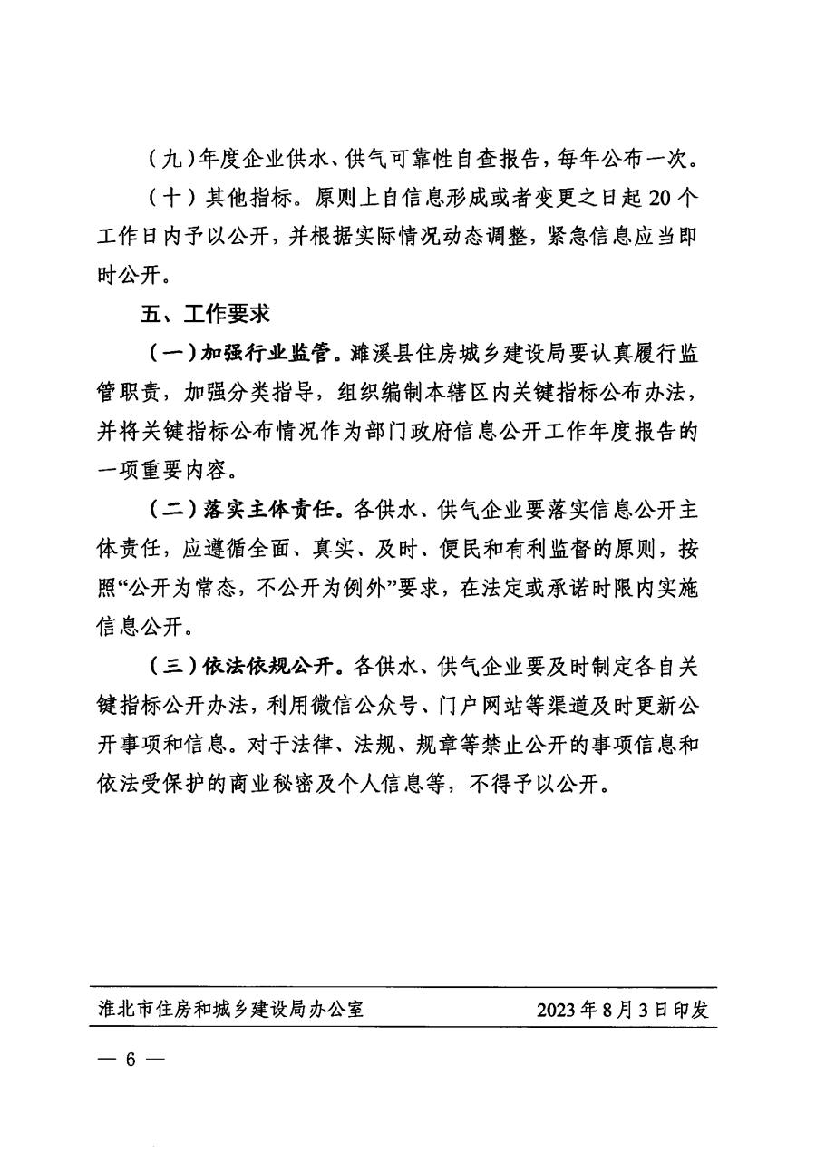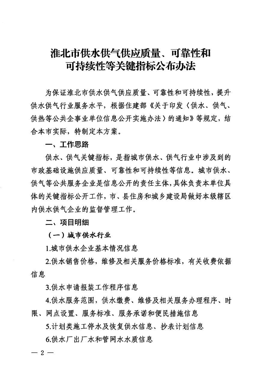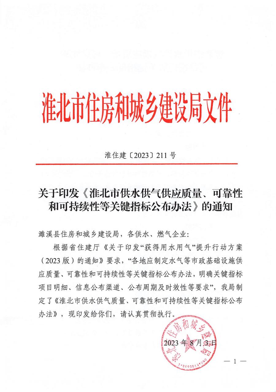 關于印發《淮北市供水供氣供應質量、可靠性和可持續性等關鍵指標公布辦法》的通知