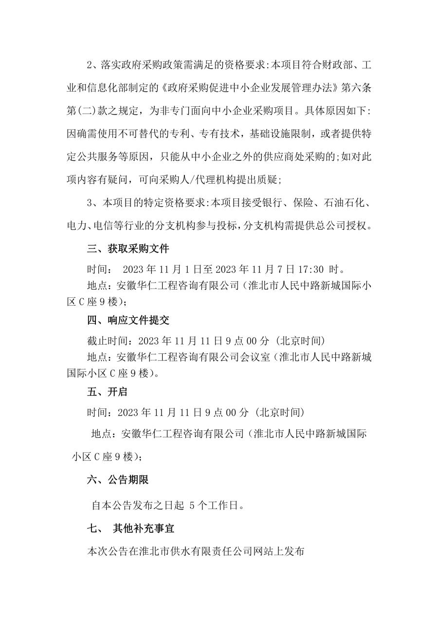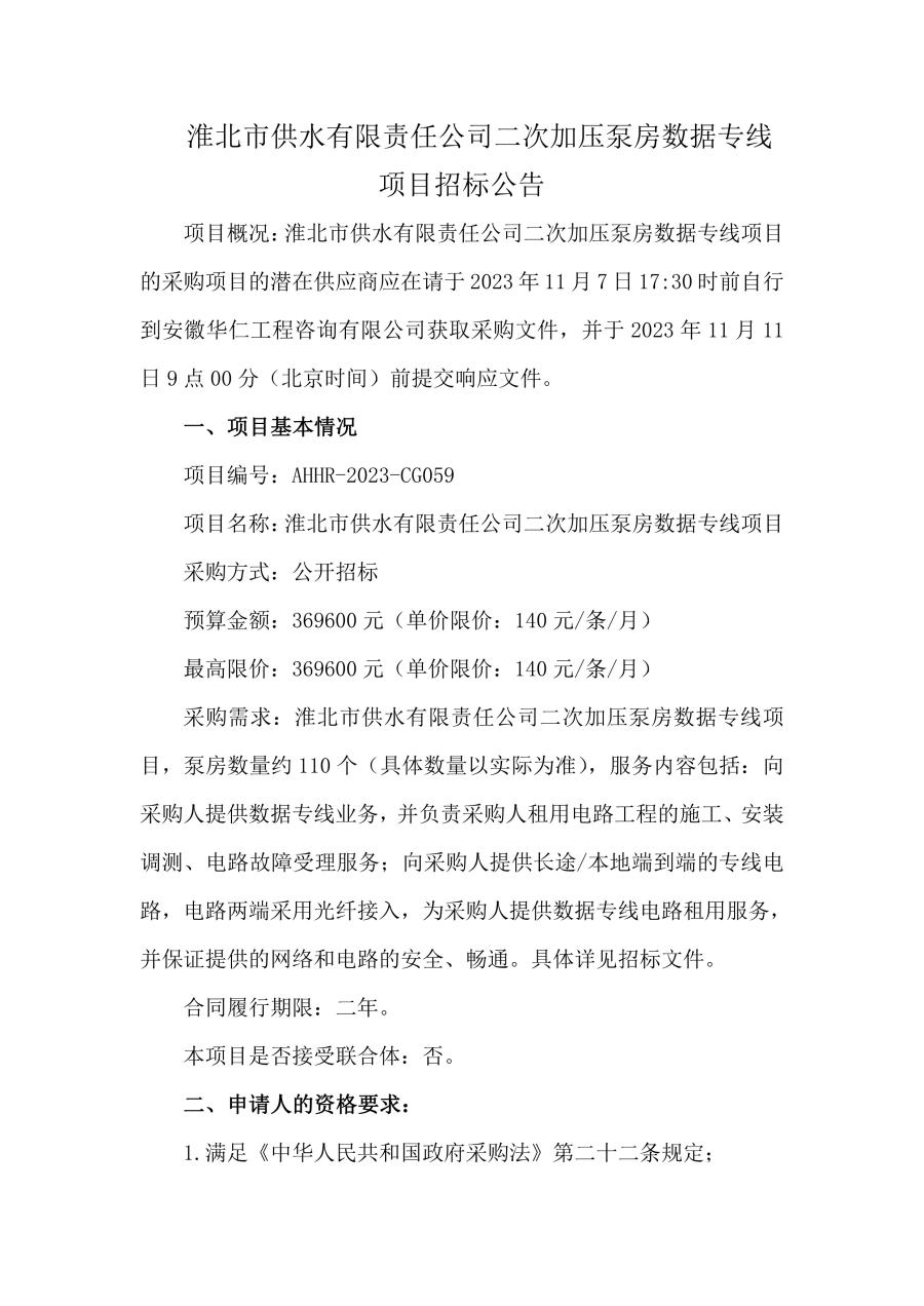 淮北市供水有限責任公司二次加壓泵房數據專線項目招標公告