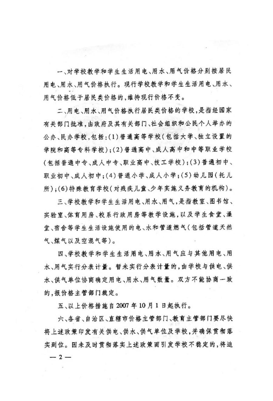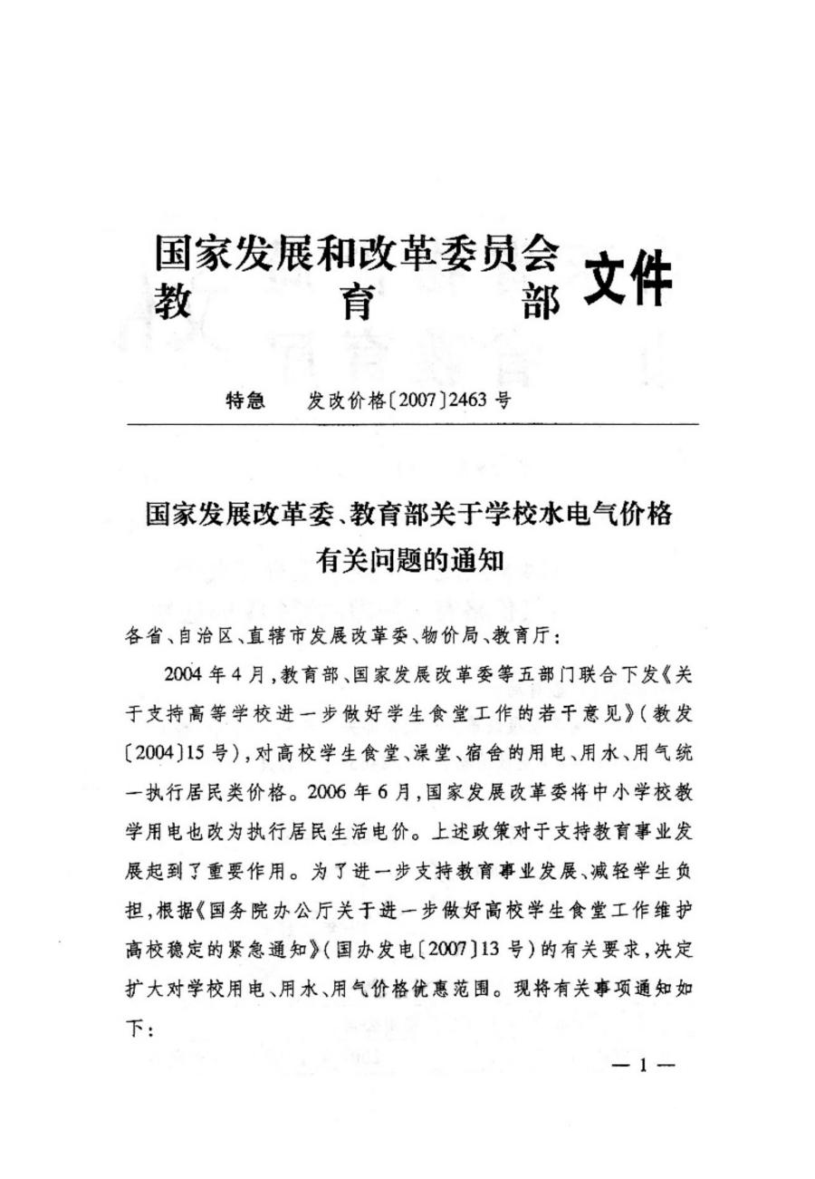 國家發展改革委、教育部關于學校電氣價格有關問題的通知 發改價格【2007】2463號