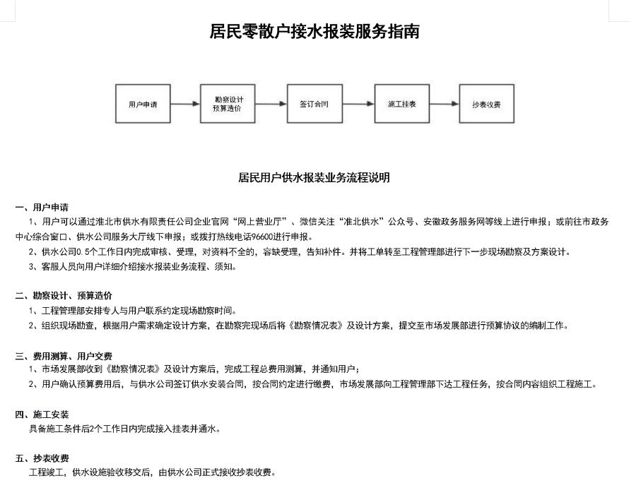 居民零散戶接水報裝服務指南