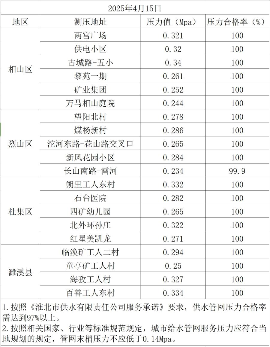 2025年4月15日水壓抽測公示