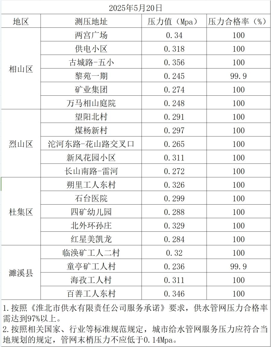 2025年5月20日水壓抽測公示