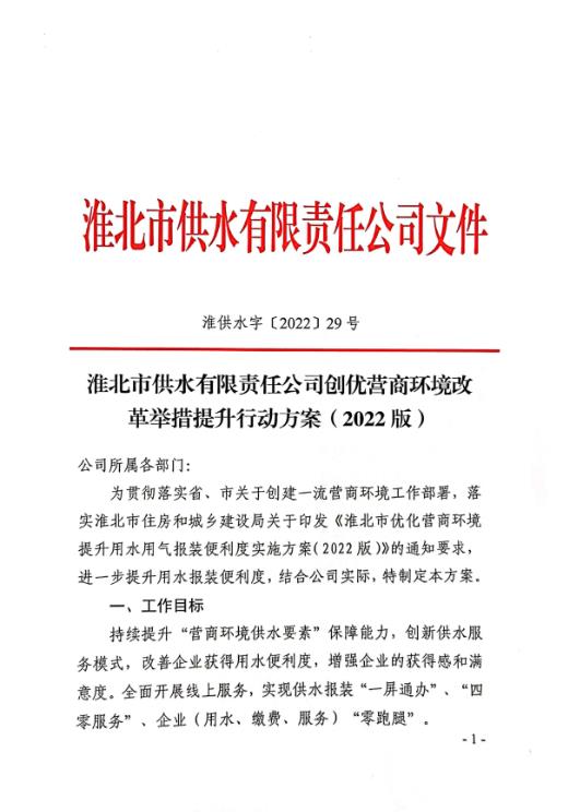 淮北市供水有限責任公司創(chuàng)優(yōu)營商環(huán)境改革舉措提升行動方案2022版