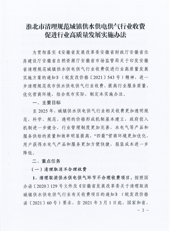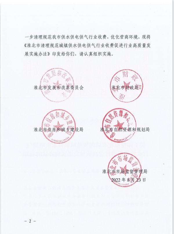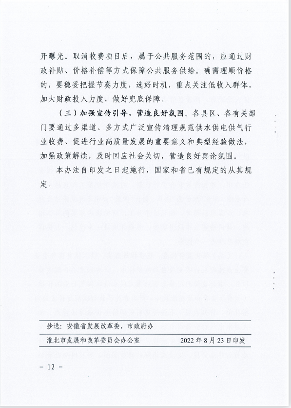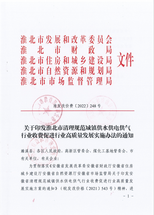 關(guān)于印發(fā)淮北市清理規(guī)范城鎮(zhèn)供水供電供氣行業(yè)收費(fèi)促進(jìn)行業(yè)高質(zhì)量發(fā)展實(shí)施辦法的通知 淮發(fā)改價(jià)費(fèi)[2022]248號